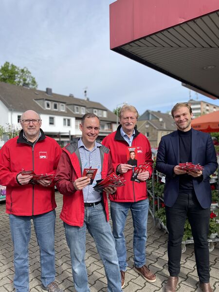 Europawahl. Infostand im Hammertal. Dr. Tobias Cremer rechts im Bild. Unser Kandidat für das Europaparlament. Von links Klaus-Dieter Faust, Dr. Bora Özkan und Martin Kuhn.