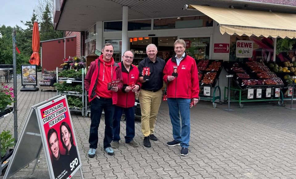 von links: Dr. Bora Özkan Mitglied im Vorstand der SPD Witten, Dieter Kokott Beisitzer im Ortsverein, Dirk Leistner-Bürgermeisterkandidat und Martin Kuhn Ratsmitglied.