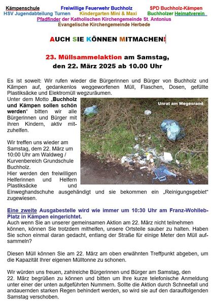 Ratsmitglied Martin Kuhn veranstaltet zum 23. Mal eine Müllsammelaktion.